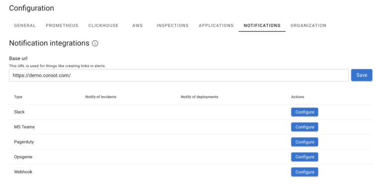 Coroot includes basic Notification support – you can configure Coroot to be notified of Incidents or new deployments using a variety of channels through flexible integration. For advanced notification features such as acknowledgement, routing, snoozing etc you should use third party software specialising in notification management.